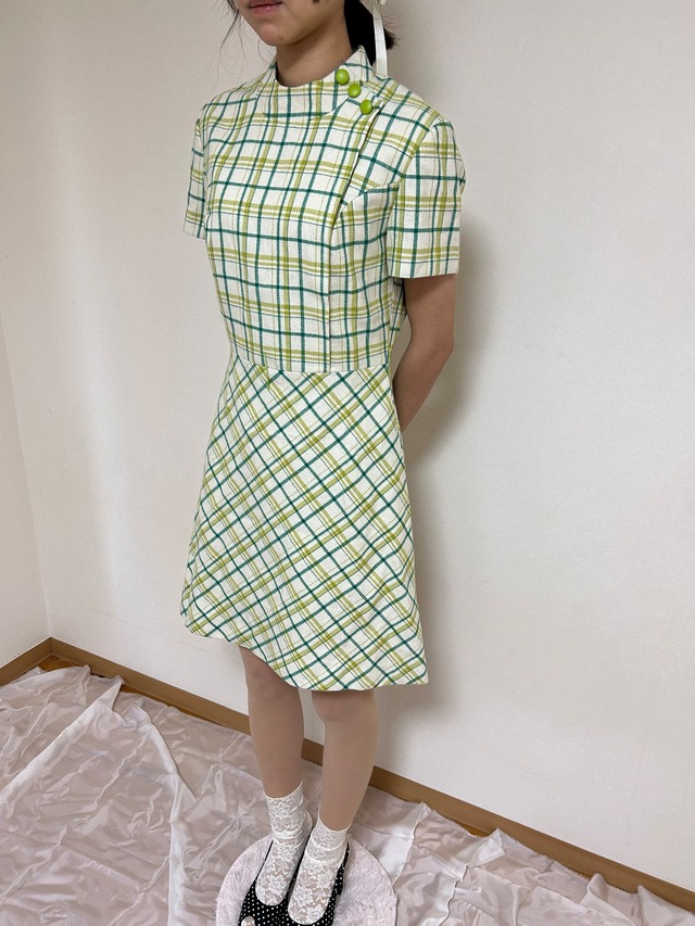 チェック柄半袖ワンピース
