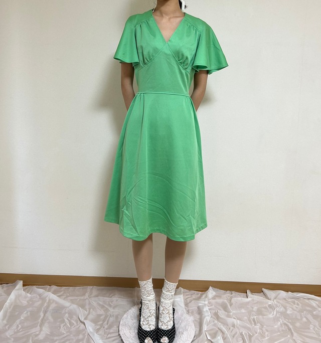 こちらvintage商品です。 生地に伸縮性あり サイズ(平置き) 着丈 91.5cm 袖丈 31cm バスト 約86cm ウエスト 約72cm ※伸縮性がある生地です モデル身長166cm *目立ったダメージ特になし* 古着の為、配送中の破損等以外の返品は出来かねますので、ご了承くださいませ。 ダメージ等表記しておりますが、気になる場合はお気軽にお問い合わせください。